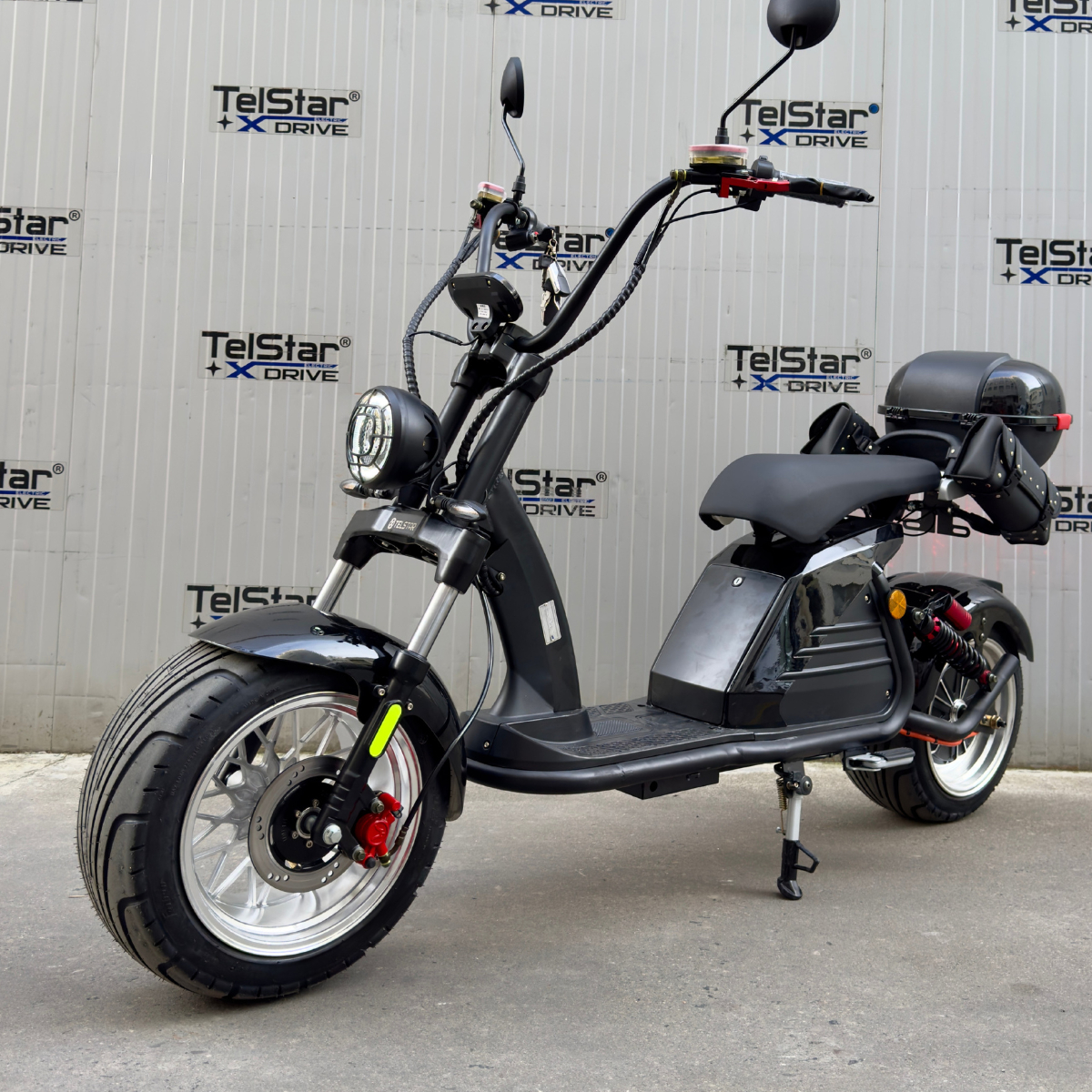 Нов модел електрически скутер BIG CITY HARLEY X6 ULTRA SPORT CE 60V 35Ah 4000W УСИЛЕНА РАМКА + гуми с по-голям диаметър + по-мощен двигател с двойна седалка, предни и задни усилени амортисьори, мощен ПОДОБРЕН 3000W безчетков мотор, голям LCD екран, аларма, защита против кражба, дистанционно, GR дискови спирачки, пълна светлинна окомплектовка + CE и EEC сертификат.
