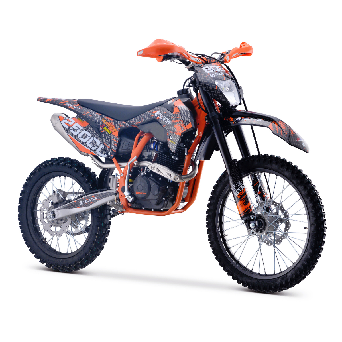 Ново на пазара за ендуро  ! Представяме на вашето внимание Мотоциклет 250CC 4 stroke TELSTAR GAS ENDURO CROSS. Мотоциклетът е изграден върху издръжлива рамка тип KTM, изработена от хром-молибденова стоманена сплав. Изпитаният във времето двигател Zongshen беше използван като задвижващ агрегат. Карбураторът NIBBI  е отговорен за приготвянето на горивната смес. Здрави джанти с подсилени джанти от алуминиева сплав. Агресивният протектор на офроуд гумата Yangsing с мощни грайфери ще ви позволи да преодолявате трудни офроуд зони. Високата седяща позиция на водача осигурява удобно управление на мотора. Стандартните окачвания на този мотор ще осигурят плавно и меко каране извън пътя. Фарът перфектно осветява пътя в тъмното. Висококачествен ауспух придава приятен и басов звук на ауспуха. Яркaта  оригинална графика на мотора ще ви направи видими на пътя и ще привлече вниманието на минувачите. Страхотен мотор Enduro без конкуренция за цената. Един от най-достъпните в тази конфигурация и размер в момента. Страхотен вариант да започнете вашата професионална ендуро кариера и страхотен за активни развлекателни дейности сред природата.