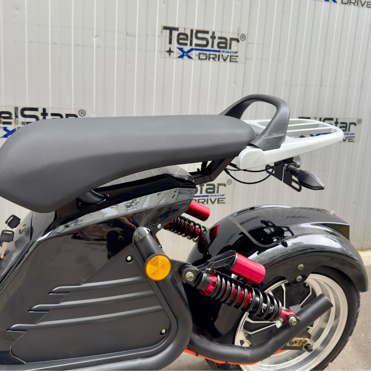 Нов модел електрически скутер BIG CITY HARLEY X6 ULTRA SPORT CE 60V 35Ah 4000W УСИЛЕНА РАМКА + гуми с по-голям диаметър + по-мощен двигател с двойна седалка, предни и задни усилени амортисьори, мощен ПОДОБРЕН 3000W безчетков мотор, голям LCD екран, аларма, защита против кражба, дистанционно, GR дискови спирачки, пълна светлинна окомплектовка + CE и EEC сертификат.