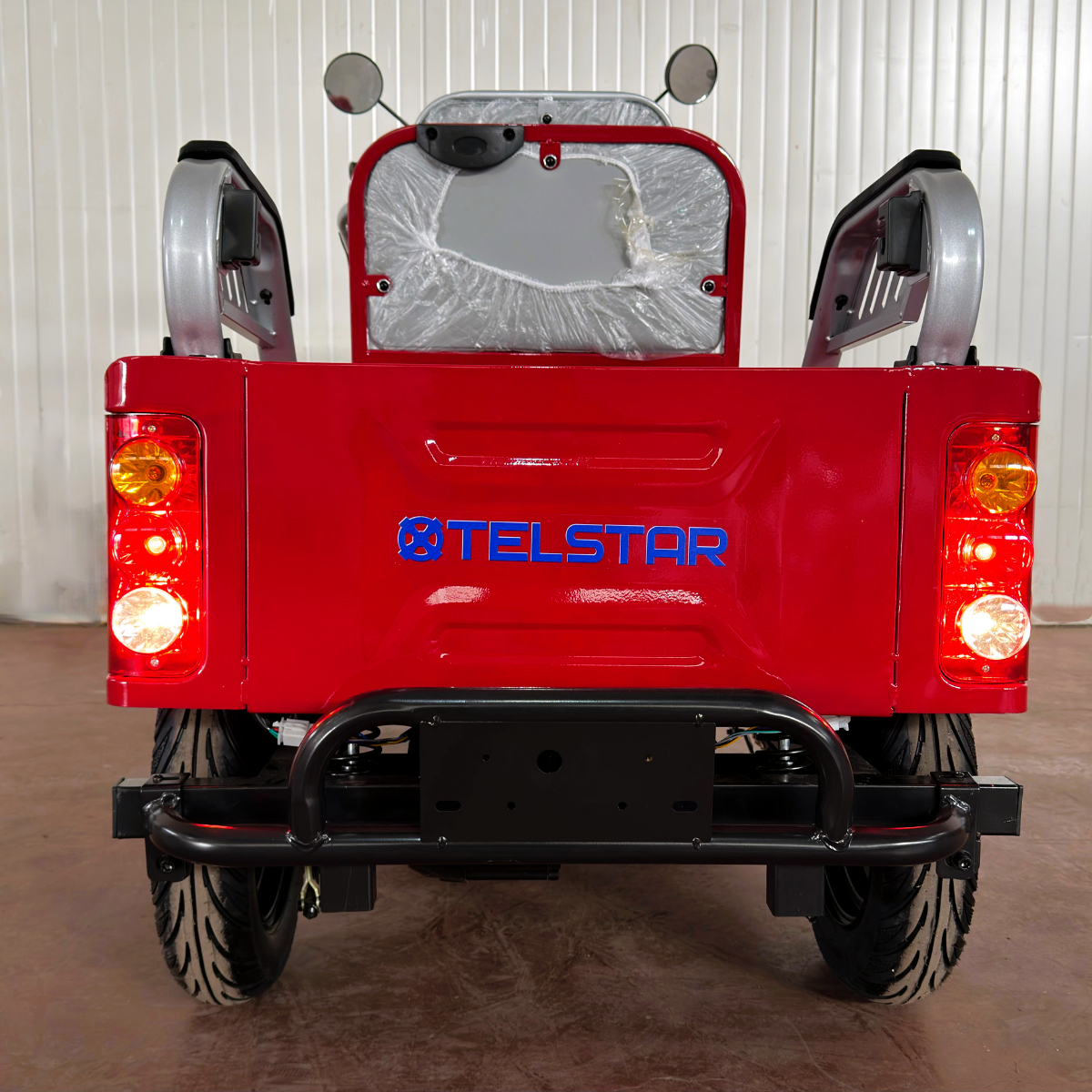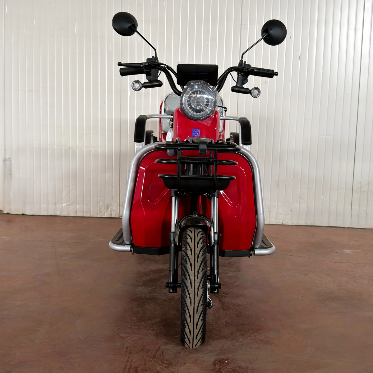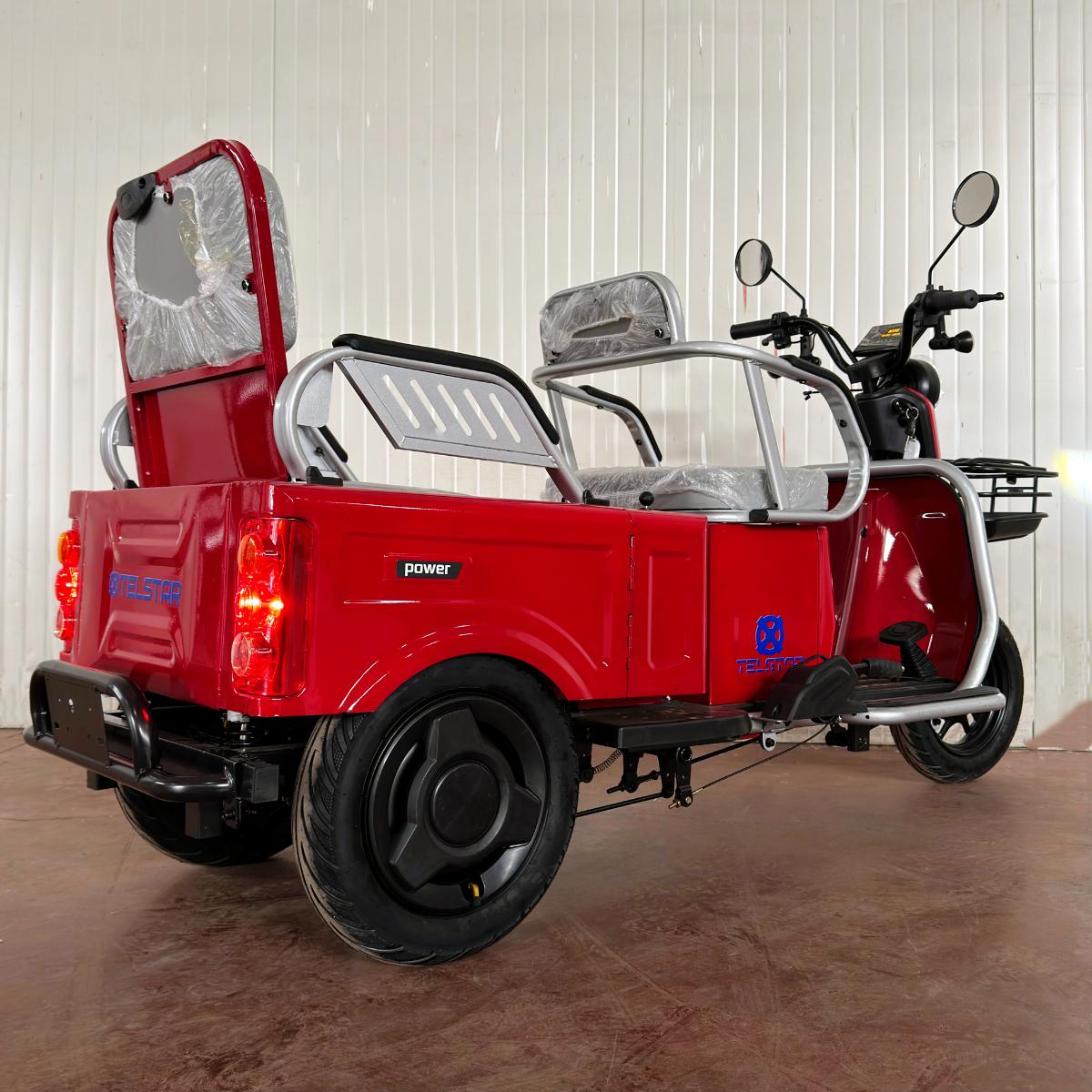 Оригинална електрическа триколка- две места + карго отделение с изключително висококачествена изработка. Задната седалка се превръща в удобно карго багажно отделение с 1 движение. Прахово нанасяне на боята по електролитна технология. Триколката се предлага и във вариант със лесна за монтаж и демонтаж покривна конструкция.