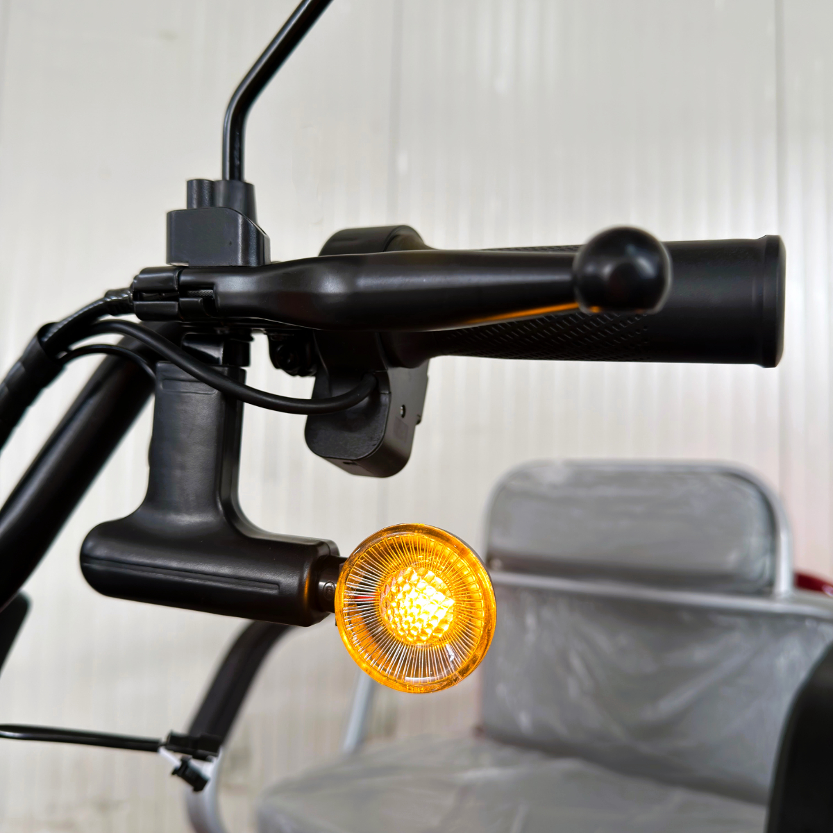 | Допълнителна информация | - пълна светлинна окомплектовка, голям модерен преден фар, стоп, мигачи, габарити - мощен преден LED фар с нов дизайн - луксозна предна и задна кожена седалка - предна пазарска кошница - ГОЛЯМ дисплей тип apple - багажно карго отделение под задната седалка - крачна спирачка - нов модел мощен контролер с плавен старт - балонни гуми подходящи за неравности - 3 скорости - задна скорост - клаксон - аварийни светлини - огледала подарък към всяка триколка- 2 броя |